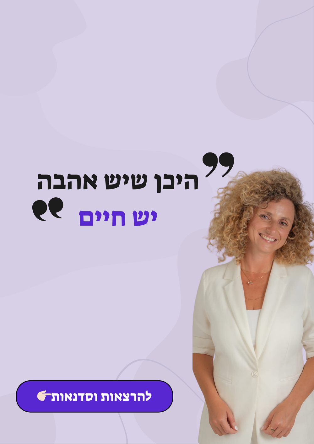 "אני מאמינה שמה שנראה לעיתים כמשבר יכול להפוך לנקודת מפנה, ושכל אדם, בכל גיל, יכול לחיות חיים מלאי אהבה וזוגיות מאושרת."